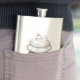 The product is a good size and came exactly as it was pictured. The lid is not attached to the flask, which could be dangerous on drunken nights... The print came out surprisingly well and looks very sharp. Would definitely recommend.