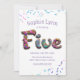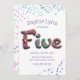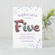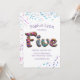 Celebrate a fun-filled 5th birthday with this adorable invitation! The design features a charming "Five" spelled out in a cookie style, decorated with colourful sprinkles, perfect for a joyful and memorable children's birthday party.