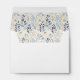 This elegant wedding suite features delicate floral and foliage designs in a dusty blue and gold colour scheme for a cohesive and stunning wedding theme. The matching envelope shown here showcases a sweet floral pattern interior and a template to add your initials and return address easily using the provided template. Search ID1045 to see other products in this wedding design set.
