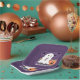 Some fun purple Halloween paper plates with a sweet ghost sipping on a cold pumpkin spice latte . It also features a cute jack-o-lantern and three flying bats . Look for matching paper napkins and cups .