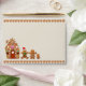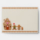 This festive envelope features a candy-sprinkled gingerbread house, a gingerbread woman, a gingerbread man, and a gingerbread cat. On the the back it displays 2 gingerbread airplanes and a gingerbread Christmas train. Personalize it today with your own text to impress your audience with your originality!