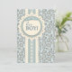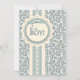 Adorable blue giraffe print with layered elements creates a faux scrapbook effect in shades of in blue and cream and makes a sweet design for a baby shower. On seeing the front, guests will have no doubt that a baby boy is on the way, and on the back, all the party details can be customized to suit your needs. Create a beautiful coordinated look with our matching postage stamps, favour stickers, and thank you cards: