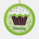 What a perfect ornament for your girly girl (or grownup) who just can't get enough cupcakes! This ornament with a chocolate cupcake with white and green icing looks good enough to eat. A ceramic ornament that can be used as much more than a Christmas ornament. Use it in kid's rooms as fan, blind or light pulls, or add a suction cup and hang it anywhere! Available in alternate cupcake and colour designs with matching products.