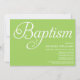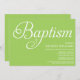 A stylish green and white baptism invitation. Featuring a script font and cross. Modern and simple -- perfect for a little boy or girl baptism. Easily personalize for your event.