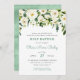 Affordable custom printed baby Baptism invitations personalized with your event details. This pretty botanical design features a watercolor frame of green leaves and ivory roses. Use the design tools to customize the text, edit the fonts and colours or add your own photos to create a one of a kind rustic floral Holy Baptism or Christening invitation.