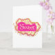 This design is the word sweet. The word sweet is written in nice font on a decorative pink background. This sweet design looks great on this Greeting Cards