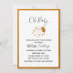 This simple Baby Shower invitation shows a happy cloud with some cute stars and the Moon. To give a touch of elegance it has a golden border in the front and golden stripes in the back and the title "oh Baby" in a handwritten style. It is the perfect mix of simplicity and elegance in one design.