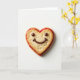 This greeting card shows a heart-shaped cookie sandwich placed in the middle of a plain white background. Two golden cookies form the heart, and you can see small holes and a lightly baked texture on their surfaces. A layer of red jam peeks out between them, making a bright border that looks sweet and inviting. On the top cookie, a smiling face made of dark chocolate adds a cute, friendly touch. The eyes are two small chocolate dots, and the mouth is a curved chocolate line that looks happy and welcoming. Soft lighting keeps everything easy to see, with a gentle shadow under the heart for a little depth. There isn’t any text on the card, so the simple image does all the talking for a warm Valentine’s message 💕❤️. Hope it helps you share love and kindness with someone special this Valentine’s Day 😘.