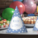 Cute birthday party hat, in blue and white, covered with love hearts and your sweetheart's name and age. Perfect for a little sweetheart valentines theme, february birthday, blue theme or love heart birthday theme at any time of the year. Please browse my Car and Balloons Valentine Birthday Collection for co-ordinating items or message me to create any extras you need.