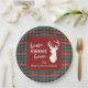 Cute home sweet home Christmas paper plates you can easily customize by clicking the "Personalize" button, Featuring deer silhouette and clan MacCulloch tartan in green red chequered pattern.