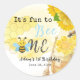 Sweet Honey Blue Yellow Green Bee 1st Birthday Classic Round Sticker