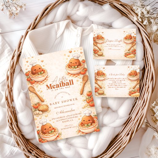 A charming and playful baby shower design inspired by the beloved “little meatball” theme. Soft illustrations and warm, cozy details create a sweet Italian-inspired vibe that feels joyful, welcoming, and full of personality. Perfect for parents-to-be who love whimsical themes with a touch of comfort and humor. Text is fully customizable to match your celebration.