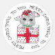 Sweet hand drawn cartoon Kitten in Christmas Gift Box Merry Christmas to you Round Sticker . These are so adorable to stick onto Christmas cards or candy favour bags.