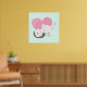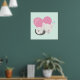 A poster with an adorable graphic illustration. A white kitty cat with a cute paw print image on her fur. Sleeping peacefully. A big pink heart behind her and some little stars too.Mint green background.