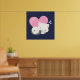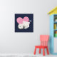 A poster with an adorable graphic illustration. A white kitty cat with a cute paw print image on her fur. Sleeping peacefully. A big pink heart behind her and some little stars too. Dark blue background.
