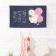 Birthday party banner with an adorable graphic illustration. A white kitty cat with a cute paw print image on her fur. Sleeping peacefully. A big pink heart behind her and some little stars too. Dark blue background.