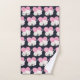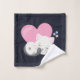 Serviettes avec une adorable illustration graphique. Un chaton blanc avec une jolie image empreinte de patte sur sa fourrure. Dormir tranquillement. Un grand coeur rose derrière elle et quelques petites étoiles aussi.