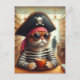 Sweet Kitty Pirate With a Coffee in a Bookshop Postcard