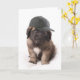 Blanco card with a sweet Leonberger dog puppy card wearing a cap.