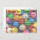 Colourful candy gumballs with an inspirational message. My original "secret" recipe for a sweet life: Mix equal parts fun, family, and friends in a bowl. Alternate equal parts of love and sunshine. Blend well after each addition, scraping down the sides of the bowl. Add generous pinches of hope and laughter. Season with adventure to taste. Pour into a pan buttered with blessings and floured with faith. Bake in a low oven for lifetime of joy. Send someone a touch of happiness with this fun postcard!