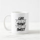 Enjoy your favourite drinks with this stylish "Life is Short, Make It Sweet" mug. Black text on a white background, perfect for coffee, tea, or hot chocolate. Makes a great gift or a daily reminder to enjoy life!