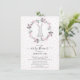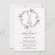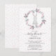 Adorable baby shower invitation featuring a little bunny rabbit framed with a delicate pink flower wreath. The back of the invite features coordinating back for an extra special touch.