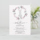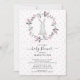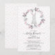 Adorable baby shower invitation featuring a little bunny rabbit framed with a delicate pink flower wreath. The back of the invite features coordinating back for an extra special touch.
