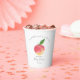 These paper cups are perfect for anyone having a baby shower this year. The design features a hand painted watercolor peach on a simple white background with easy to personalize template wording. Matching party items can be found in the collection.