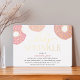 Cute baby sprinkle invitations feature a trio of doughnuts in shades of pink, topped with gold foil sprinkles. "Baby Sprinkle" appear in gold foil lettering, with your event details beneath.