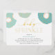 Cute gender neutral baby sprinkle invitations feature a trio of doughnuts in shades of aqua, topped with gold foil sprinkles. "Baby Sprinkle" appear in gold foil lettering, with your event details beneath.
