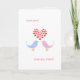 Two sweet lovebirds, one blue one pink, make this a very romantic card for Valentine's Day. The text on the front is customizable and reads "Love you!" and "Love you more!" So much love and affection creates a heart shape of little red hearts above the two birds. Inside, the greeting can be customized too, or you can use the simple "Be my Valentine". This greeting is on a background of white hearts scattered on soft pink, to emphasise the loving theme.