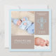 Contemporary blocks of soft colour highlights two photos of your sweet baby boy in this modern design for your son's christening or baptism. Adorned with an elegant cross of baby blue on the front, all your celebration information is on the back. Also available: