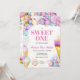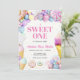 Celebrate your little one's big milestone with this "Sweet One" invitation! Featuring a whimsical pastel balloon arch, doughnuts, and ice cream, it perfectly matches popular doughnut-themed party decorations. The backside features a clean arch frame for your baby's photo and a heartfelt message. Easy to customize for a professional look.