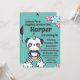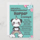 Celebrate a magical celebration with this adorable Panda Unicorn on top of a rainbow. The background is a lovely teal/blue green, features pink and blue floral accents. Personalize to any party details.