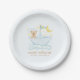 Whimsical and sweet paper plates design features an adorable vector illustration of a cute brown baby bear inside a light blue paper boat. Stars and moon on a very light blue decorate the background. Personalize them with your custom message and use them for baby showers, baby's first birthday party, Christenings, Baptisms, and much more!