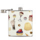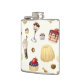 Sweet pattern with various desserts. hip flask