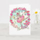 Ballerina Bunny celebrates the sweet pea, the flower for April, while delivering your message on this blank notecard.