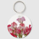 Keychain / keyring with photo of bunch of pink sweet pea flowers.