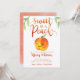 Cute peach theme girl's baby shower invitation template card featuring an illustration of a peach with a smile on her face. The hand lettered typography text above says "sweet as a peach." Great card for spring and summer showers.