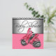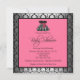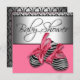 Elegant silver, pink and black damask baby shower invitation. This adorable pink zebra baby shower invitation features a pair of baby booties and baby dress on an elegant pink and black damask background. This elegant pink and black baby shower invitation is easily customized for your event by adding your event details, font style, font size & colour, and wording.