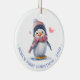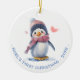 Sweet Pink Baby Penguin | Baby's First Christmas Ceramic Ornament - Create a cherished keepsake to celebrate your baby's first Christmas with our adorable personalized ceramic ornament. Featuring a sweet pink baby penguin dressed in cozy winter wear, this ornament is the perfect way to preserve precious memories. Add a special photo of your baby to the back of the ornament. Personalize the ornament with a heartfelt message or the baby's name.