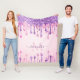 Sweet Pink Purple Glitter Dripping Girly Monogram Fleece Blanket