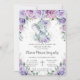 Sweet Purple Floral Elephant Christening Baptism Invitation