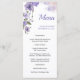 An elegant wedding menu featuring a soft purple floral design, offering a sweet and romantic touch.