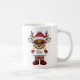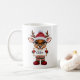 Personalized kids Christmas morning cocoa mug with a baby reindeer wearing Christmas pyjamas.