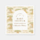 A sweet storybook-style safari design featuring gentle watercolor baby animals including lions, giraffes, and elephants surrounded by soft jungle greenery and delicate botanical details. The warm neutral palette of cream, honey gold, and soft olive creates a timeless nature-inspired aesthetic, while the elegant arched layout leaves beautiful space for personalized event details.