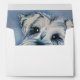 Sweet Schnauzer Puppy Envelope for Girlfriends, Best Friends, family members or for yourself! Grey or Grey Schnauzer Puppy has been painted in watercolors by the designer. Sparkling Black Eyes and a Red Scarf will warm your heart