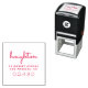 Easily personalize these custom Sweet Script Family Name Return Address self-inking rubber stamps with your own names and address. To customize these rubber stamps, click on "Personalize this template" and change the text in the boxes provided. Available in 9 different colours and 6 sizes. Please view your design on the monitor as close to actual size as possible to ensure that the text prints at the expected size. For use as a return address stamp most people will require a larger size than this. These return address self-inking rubber stamps stamp up to 10000 impressions with each cartridge, have a soft touch for secure grip and ink-free fingers and an eco-friendly manufacturing process. No minimum order quantity.