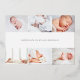 Les annonces de naissance élégantes présentent votre photo préférée de nouveau-né en plein saignement, avec le nom du bébé sur lequel est inscrit le script de calligraphie de feuille d'or. Personnalisez avec les statistiques de naissance du bébé sous. Ajoutez six photos supplémentaires au dos dans une mise en page collage, avec les noms des parents ou de la famille au centre.