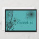 Pretty Sweet Sixteen Invitation with turquoise background and black stars and flowers. You can create a Bat Mitzvah, Quinceanera invitation if you like. Customize to suit. Choose your favourite colour and font.